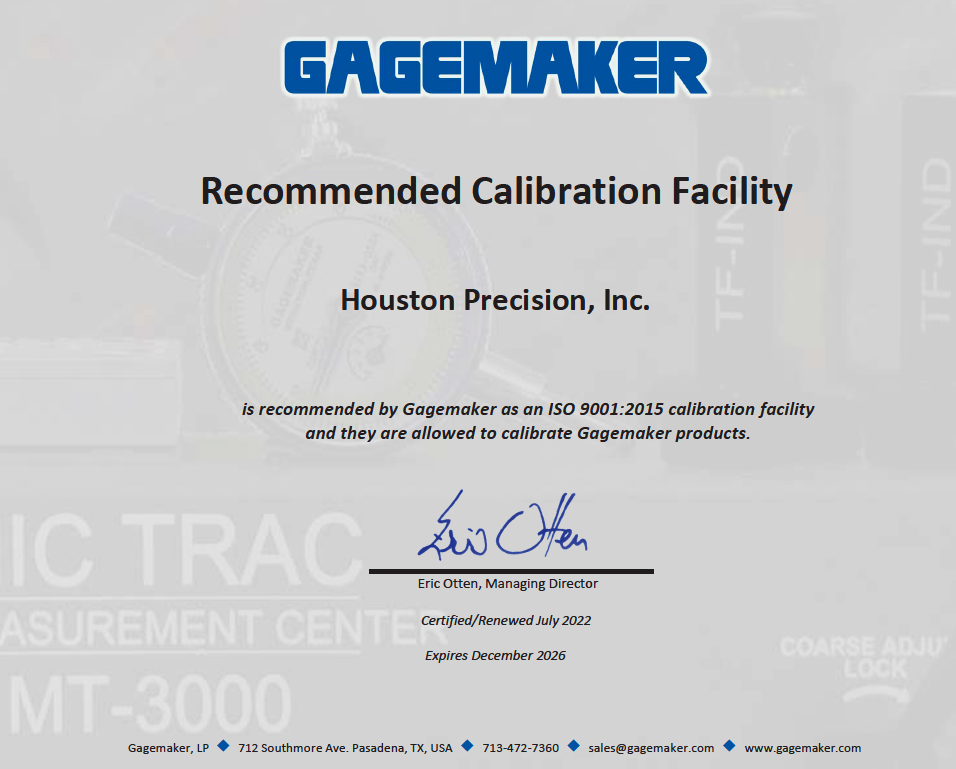 Quality Manager Contact: quality@houstonprecision.com